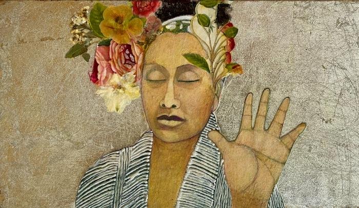 Deirdre O'Connell, Zoom #6: Nicole (2026), mixed media on wood panel. Photo Courtesy Susan Eley Fine Art.
