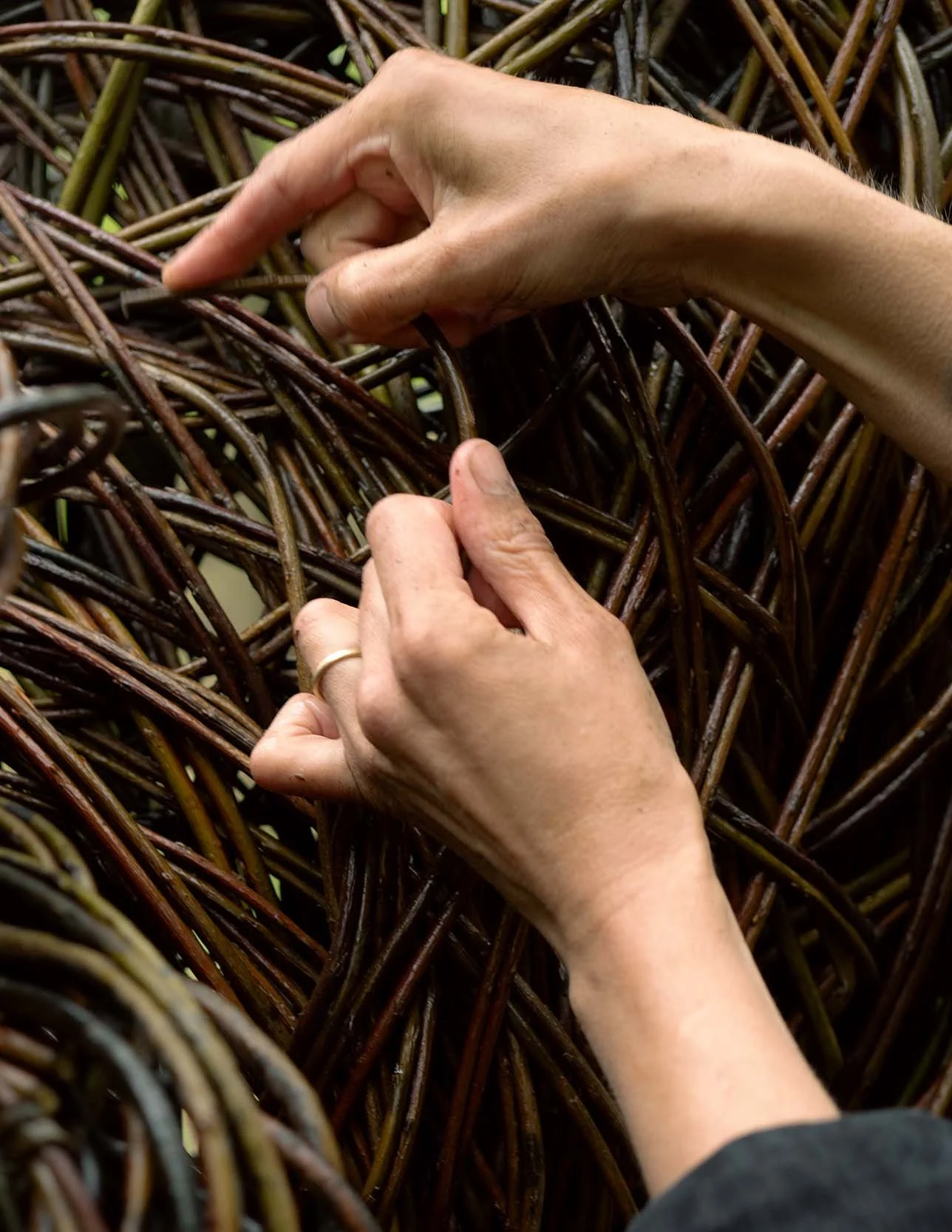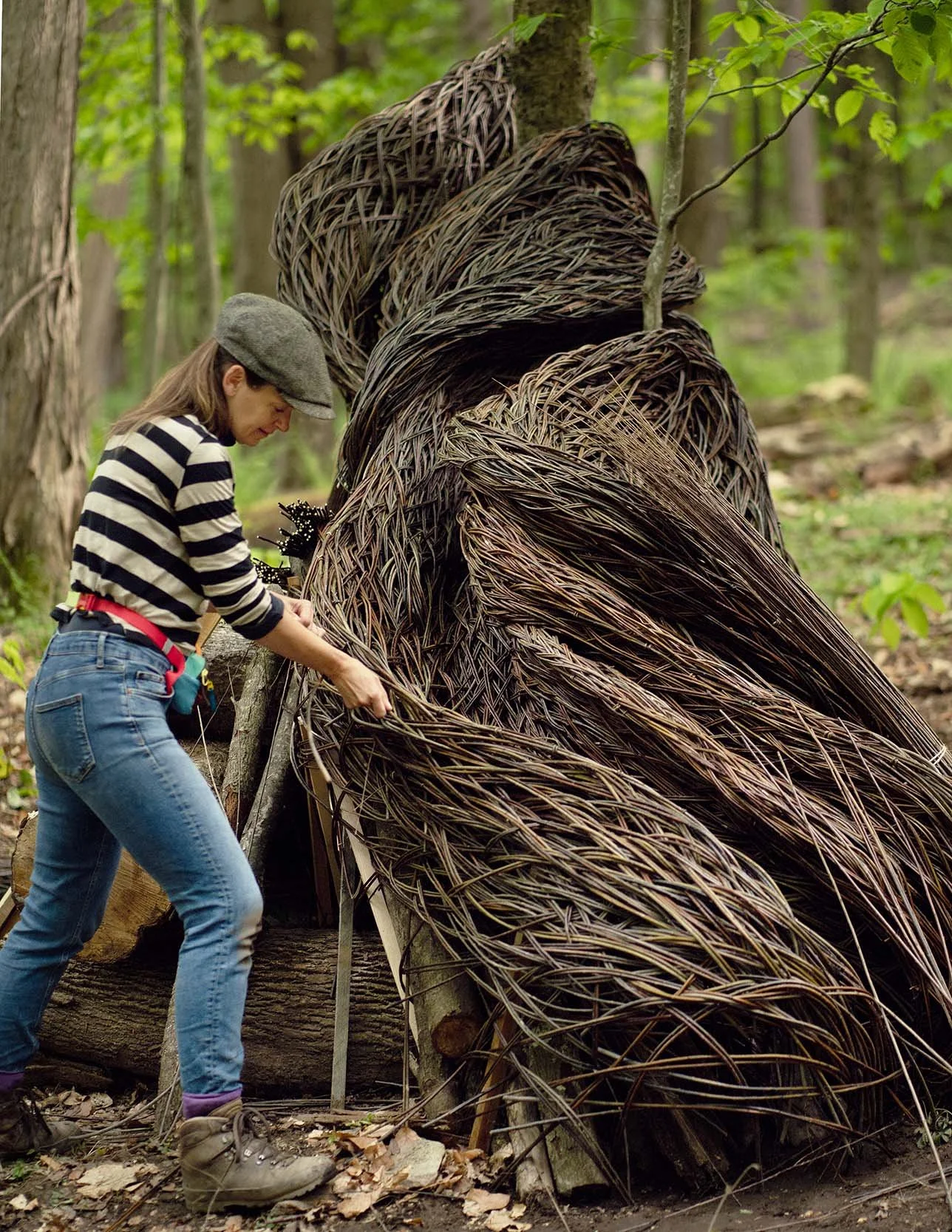 A mighty wave of willow rises in the woods. It accumulates gradually, as natural things do, strand by strand, twist by twist. Yet this extraordinary apparition is very much the work of human hands: to be specific, the skilled, strong hands of Laura Ellen Bacon. Over the past two decades, she herself has been a steadily larger phenomenon in British art, known for her subtle yet seismic forms both in willow and other materials, including hardwood and fieldstone.
