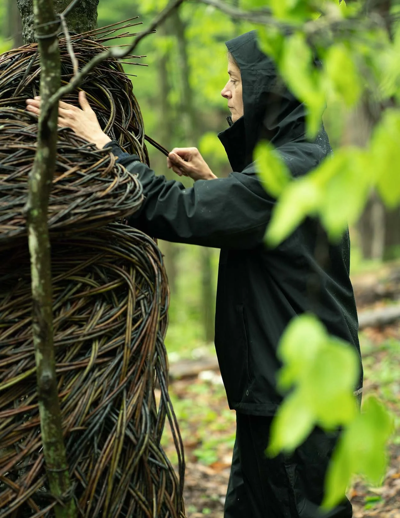 Bacon’s monumental sculpture, like the others in Ground/Work, will be on view for a full year, through four seasons. It can be seen for free by anyone, anytime, even in the middle of the night. One might say, though, that its first audience is the forest itself. Even as Bacon was building it, the tidal construction of Ohio-grown willow was becoming a habitat for insects. It will doubtless go on to be a nest for birds, a burrow for small mammals. In this daily journal, kept by the artist at the request of Upstate Diary, we follow her own journey as she brought her sculpture to life.