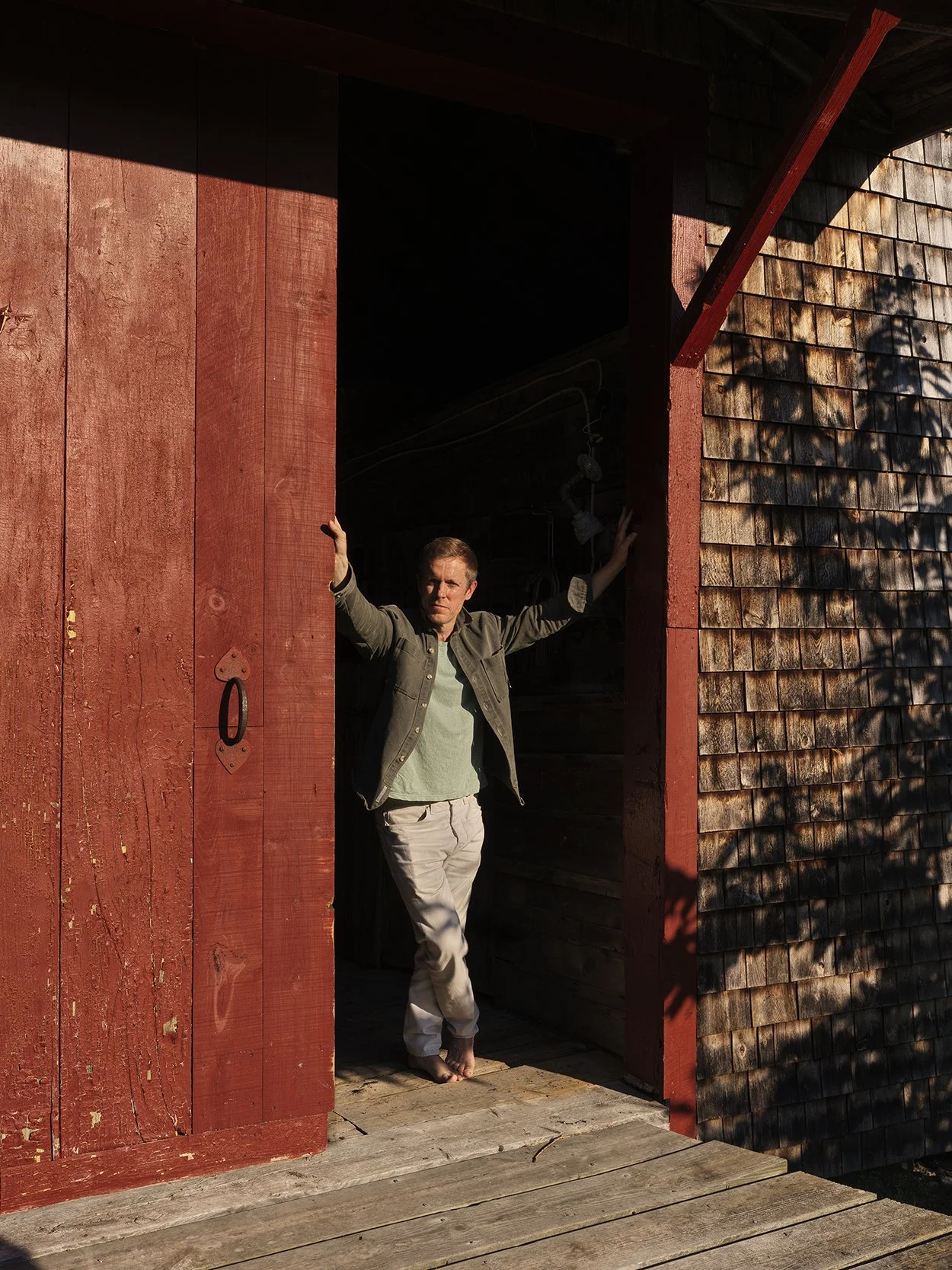 Scott LaStaiti stands in the doorway of the property’s old barn.