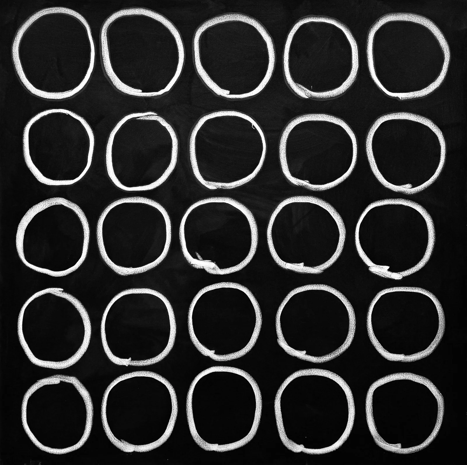 Alexander Liberman's 1993 paintings feature loose, fluid circle compositions in black, white, and gray — marking a notable shift from his earlier hard-edge geometric work. Also on view are Kyohei Inukai paintings and silk screens from 1969.