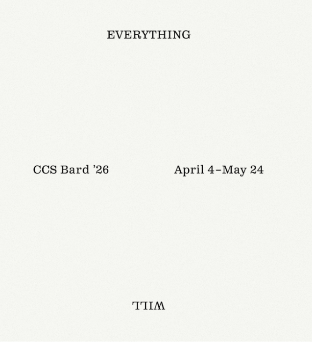 EVERYTHING THAT HAPPENS WILL HAPPEN TODAY. A collection of 12 graduate thesis exhibitions organized by CCS Bard’s Class of ‘26. Informed by the turbulent political climate of the past two years yet motivated by distinct curatorial concerns, the projects collectively ask where—and when—we look to understand our present moment. Spanning diverse disciplines, time periods, and materials
