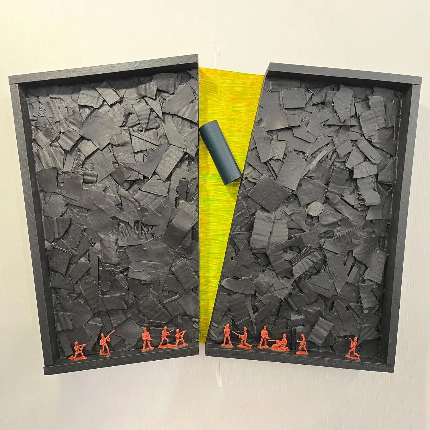 ‘Coddiwomple’ is a slang word meaning “to travel purposefully toward an unknown destination”, the ethos that drives Rostow’s practice by using printed paper, clay, pigments, and sand, her sculptures grow through layering, burying, and uncovering.