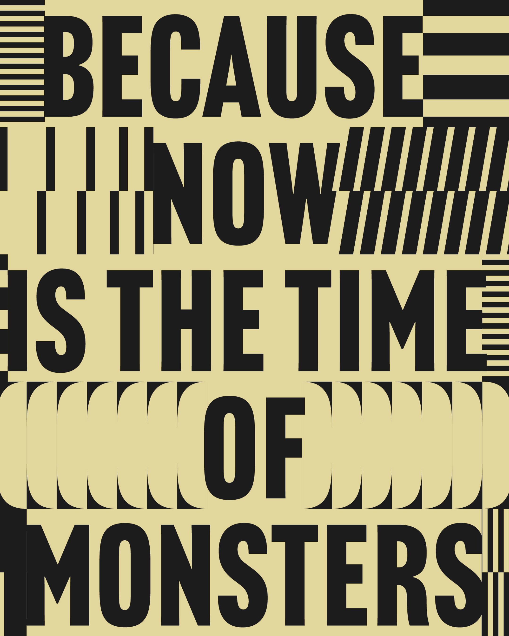 May 16 - Sept. 12, '26 BECAUSE, NOW IS THE TIME OF MONSTERS. Featuring 39 artsits. The title points back to Antonio Gramsci's Prison Notebooks, written from a fascist prison cell, where he described the interregnum, the space between a dying world and one not yet born, as fertile ground for opportunists and monsters alike.